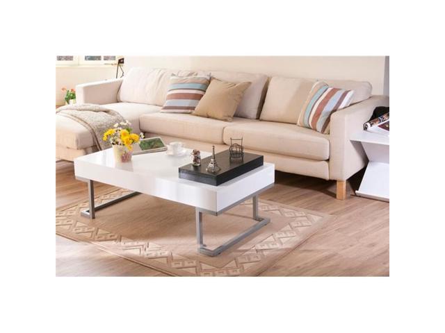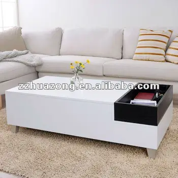 White Black Modern Coffee Table With Tray Tablet Square Buy