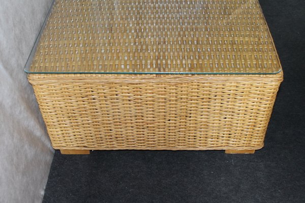 Minimalist Glass And Rattan Coffee Table 1980s For Sale At Pamono