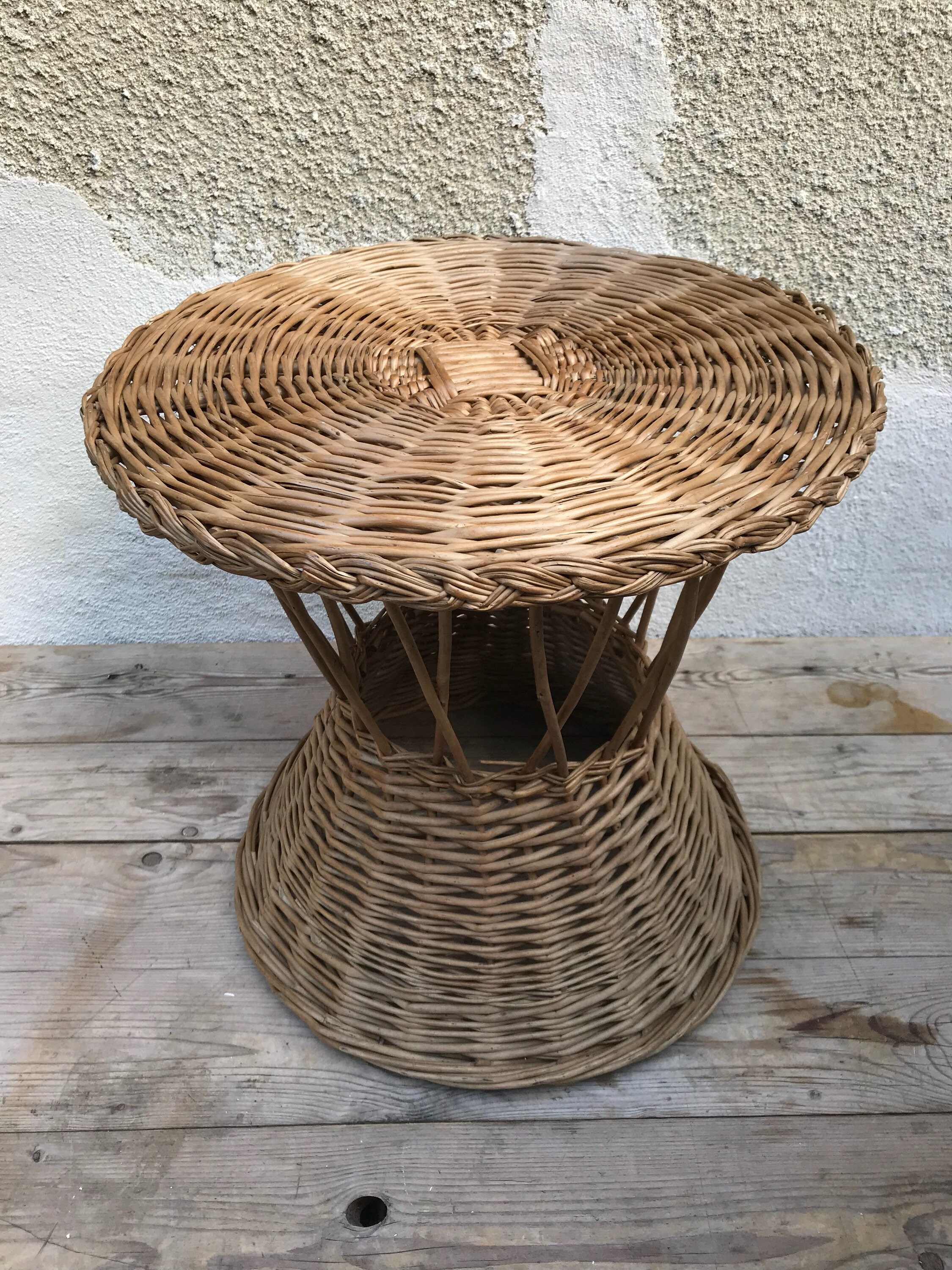 Coffee Table Old Diabolo In Rattan Vintage Braided Plateau Etsy