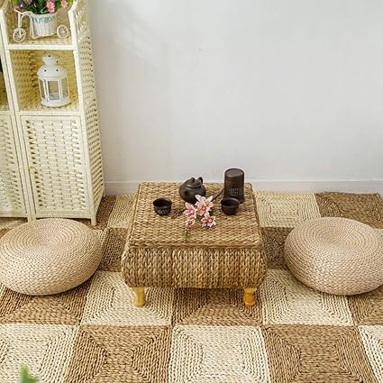 Small Coffee Table With Storage Bamboo And Rattan Tatami Platform