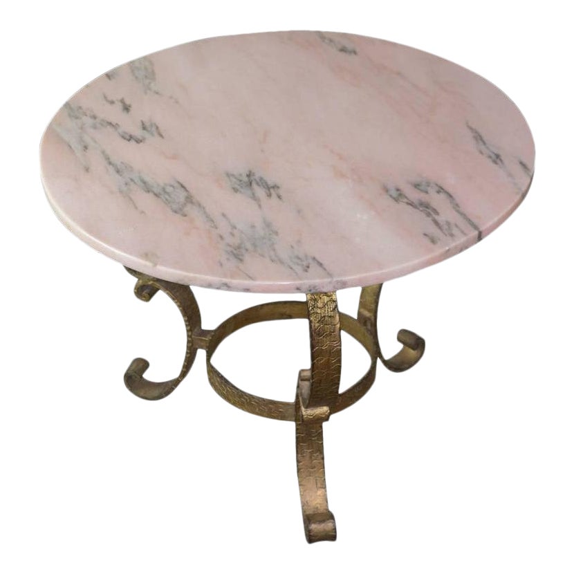 Small Round Gilt Metal Coffee Table With Pink Marble Top 145